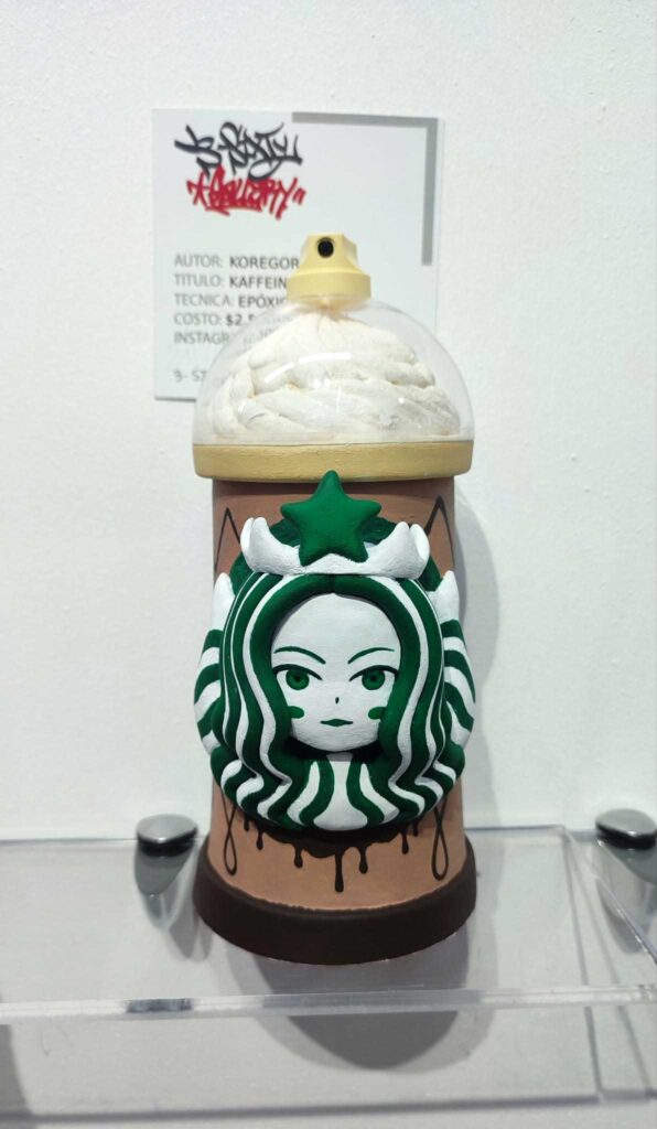 Todo comenzó con una invitación del equipo de 360 Spray Paint para realizar el review de su lanzamiento más esperado: su primer Art Toy de vinilo, «I Love Graffiti». Llegué a su sucursal PRO en el Centro Histórico de la CDMX y, como amante del orden y los materiales, me impresionó ver las latas distribuidas por colores como si fueran un Pantone gigante. ¡Era el paraíso para cualquier creativo! Tras grabar el proceso y compartirlo en Instagram (donde alcanzamos más de 14,000 vistas), la colaboración creció y me invitaron a intervenir la pieza para su exposición oficial.